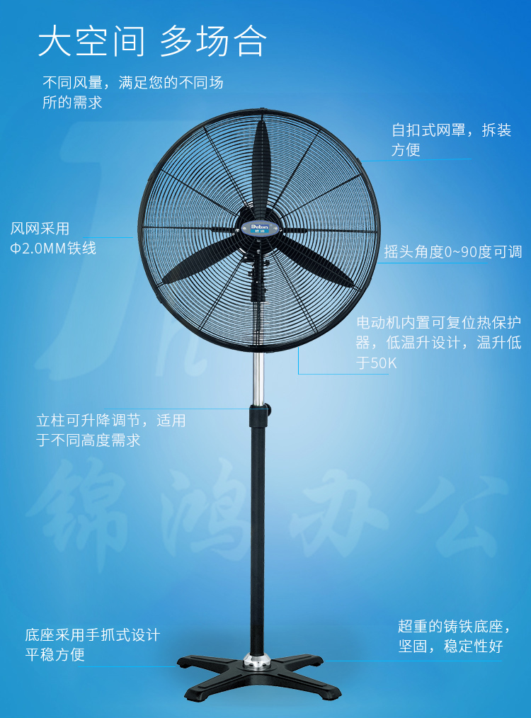 德通 750mm/380v/240w 密网 工业落地扇