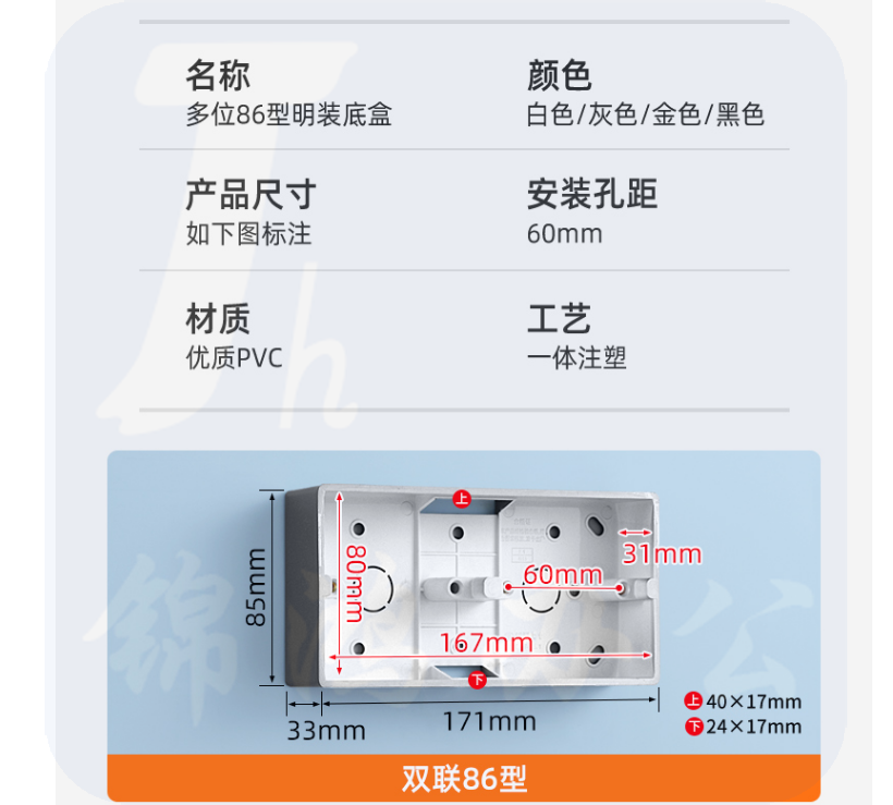 通用86型明装双联底盒 双联明盒 雅白 货号:JC