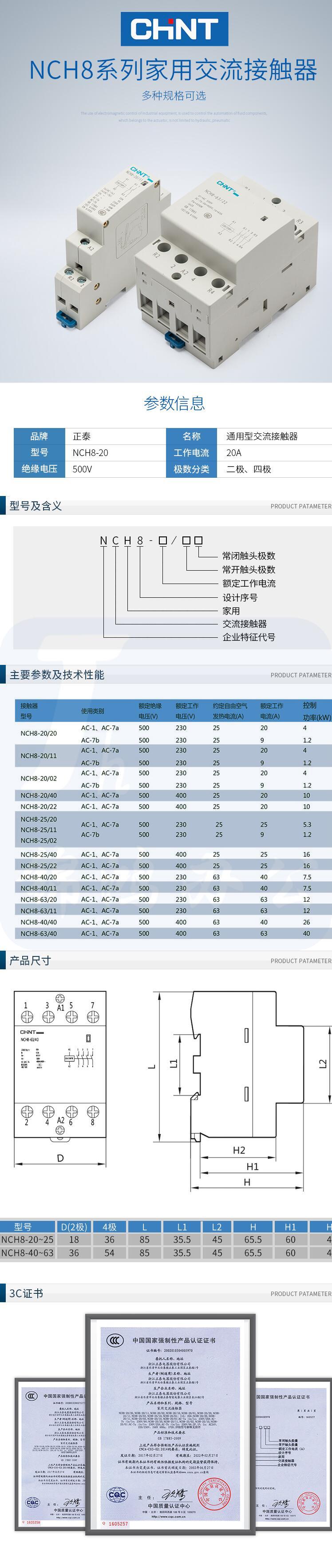 正泰接触器 NCH8-40/40AC220/230V 货号:LJ