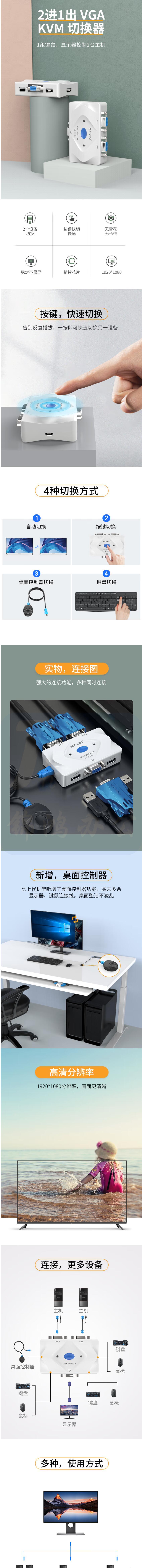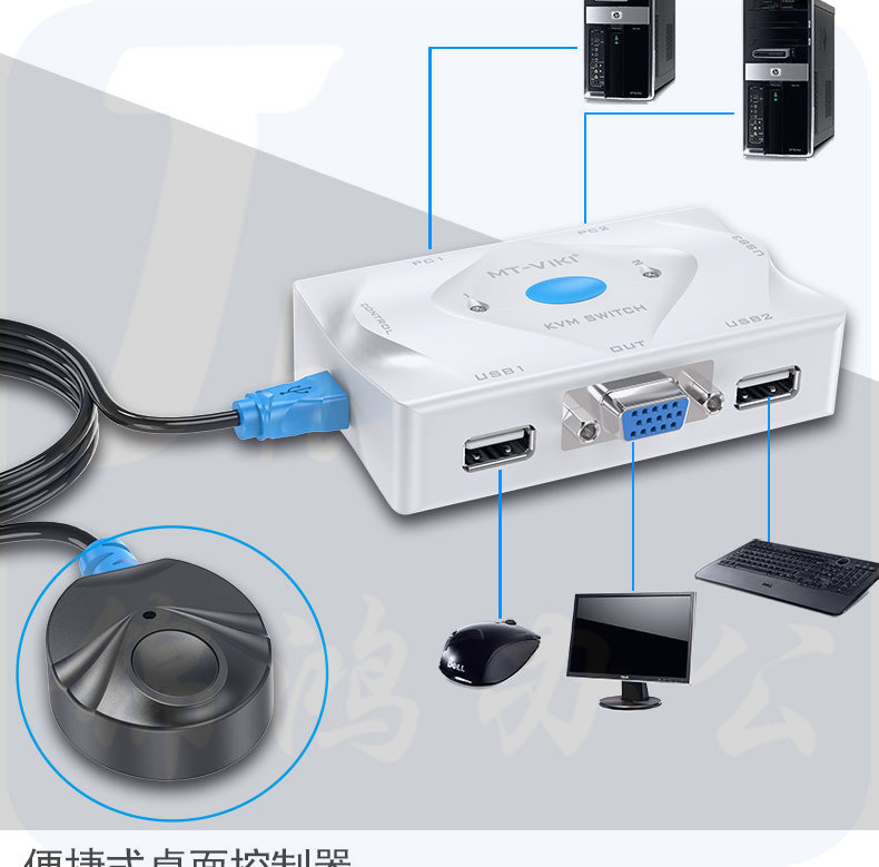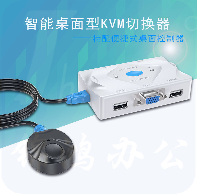 迈拓维矩 MT-201KL 2进1出 2口KVM切换器 带桌面线 控热键自动鼠标键盘显示器共享器配线