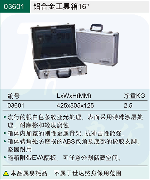 世达(SATA)16"铝合金工具箱 收纳箱大号多功能16寸收纳箱铝合金手提箱货号03601 货号