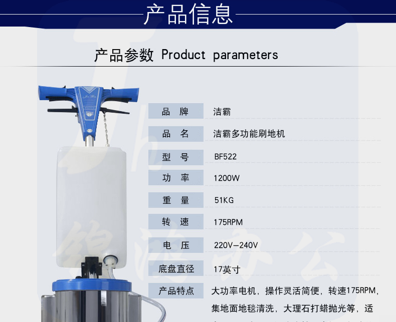 白云(BAIYUN) 洁霸 多功能洗地机清洁地板打蜡抛光机 BF522