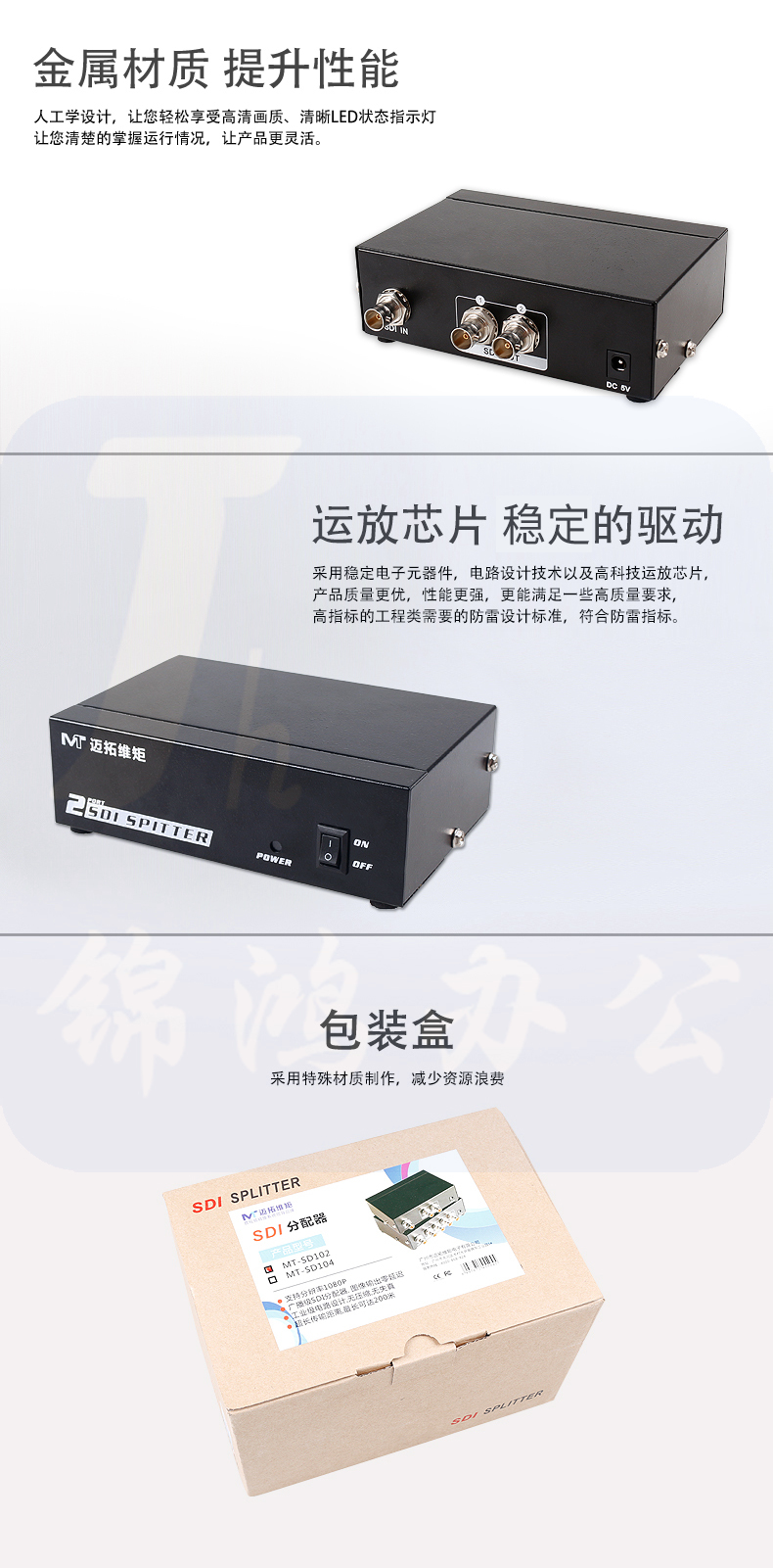 迈拓维矩MT-SD102 sdi分配器1进2出高清一分二视频分支器中继器1080p
