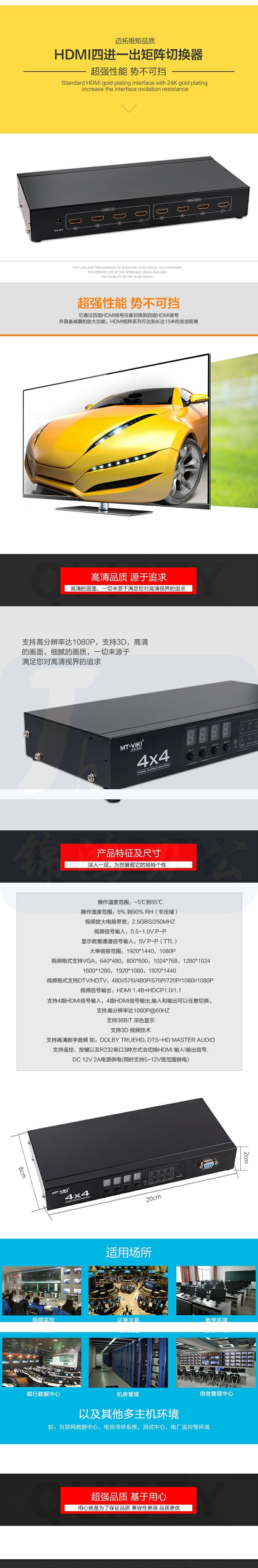 迈拓维矩MT-HD4x4 HDMI矩阵四进四出 4进4出HDMI高清切换分配器 默认尺寸