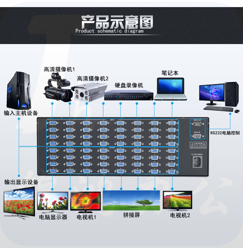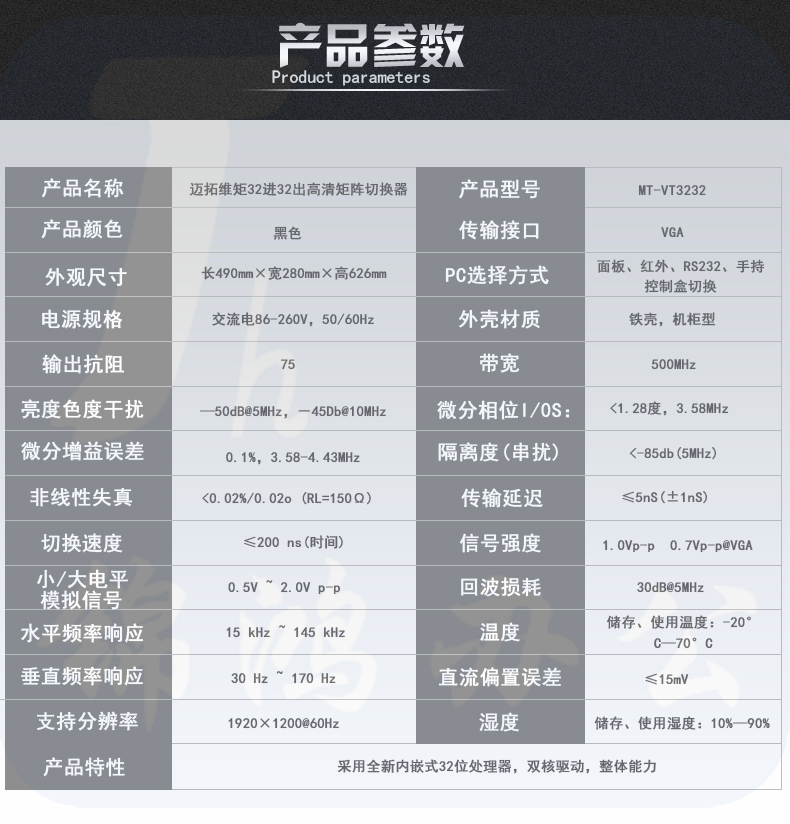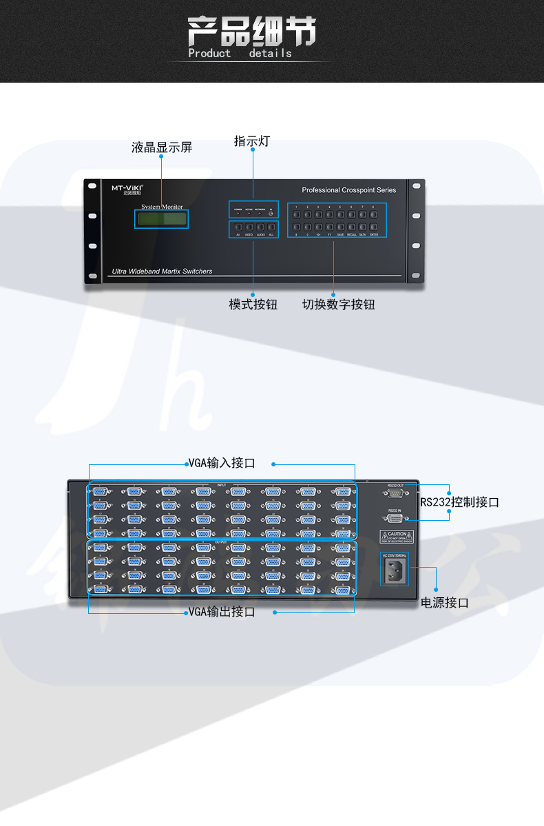 迈拓维矩MT-VT3232 vga矩阵切换器32进32出高清监控视频矩阵切换器
