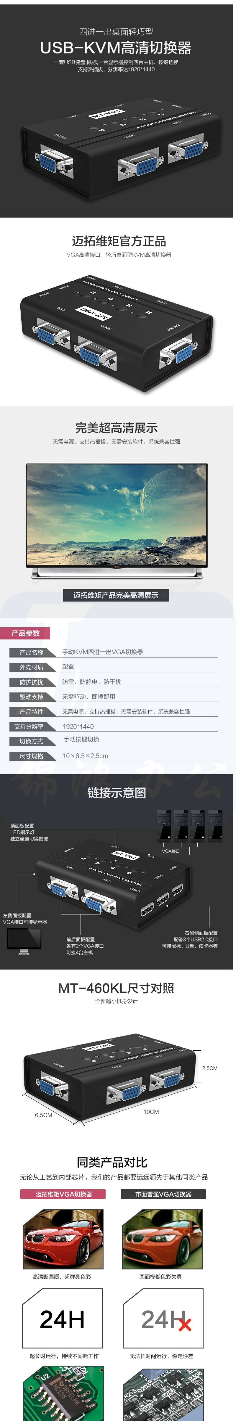 迈拓维矩MT-460KL 4口 USB KVM切换器 4进1出电脑鼠键共享器