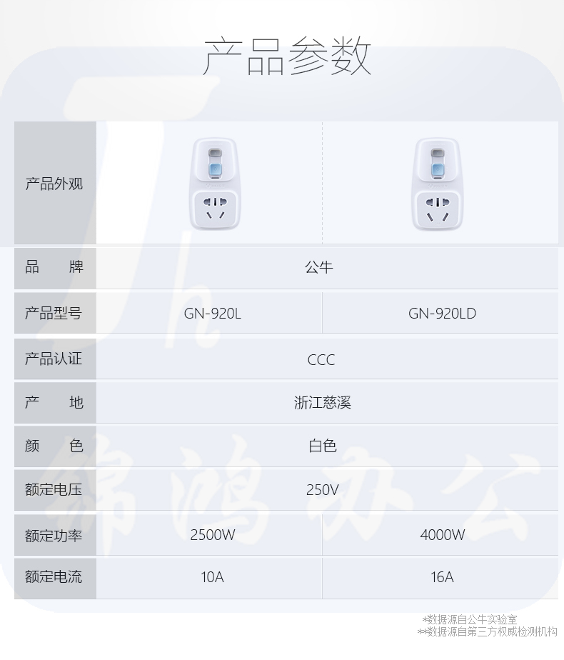 公牛GN-920LD漏电保护转换插头16A插座转换器
