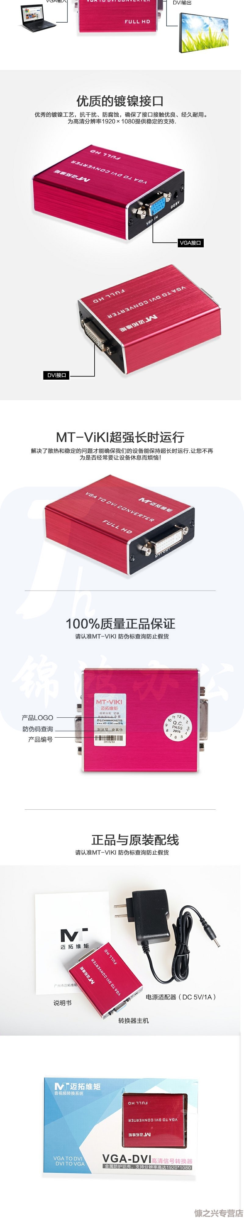 迈拓维矩MT-VD01 VGA转DVI转换器模拟信号转数字信号电脑转