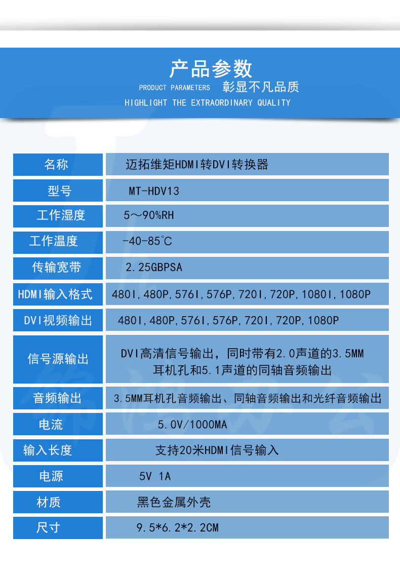 迈拓维矩MT-HDV13 hdmi转dvi转换器高清音视频ps4电脑监控显示器转换