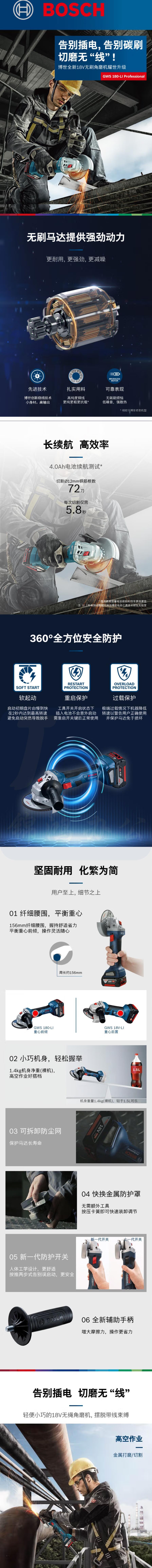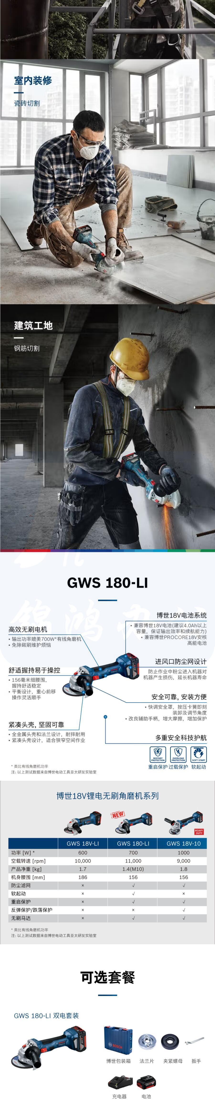 博世 GWS 180-LI 18V锂电角磨机切割机开槽机打磨机 4.0Ah电池 2块