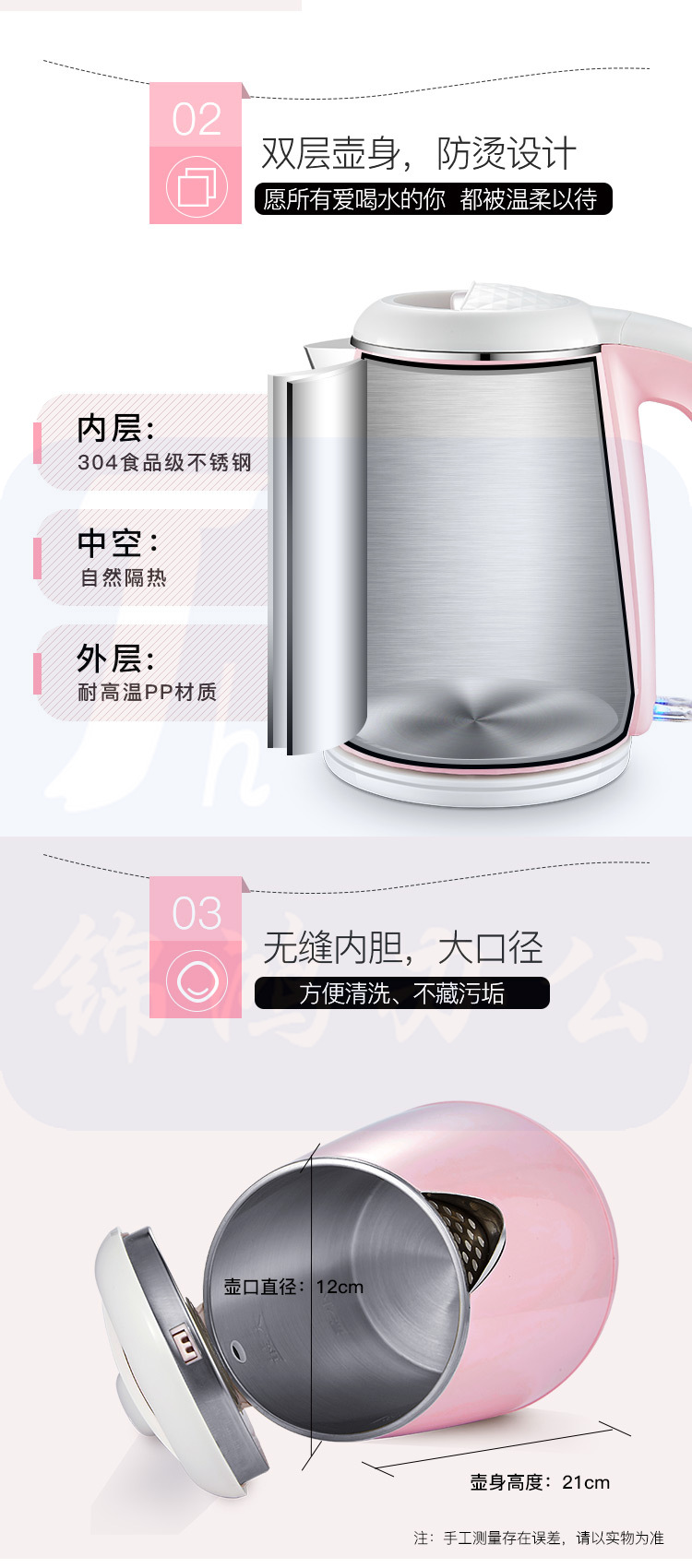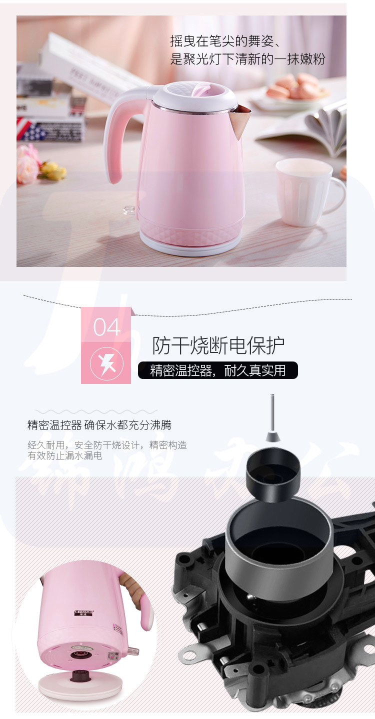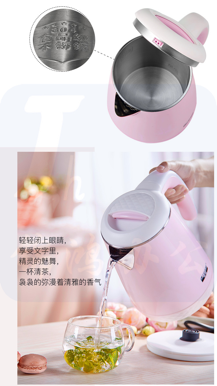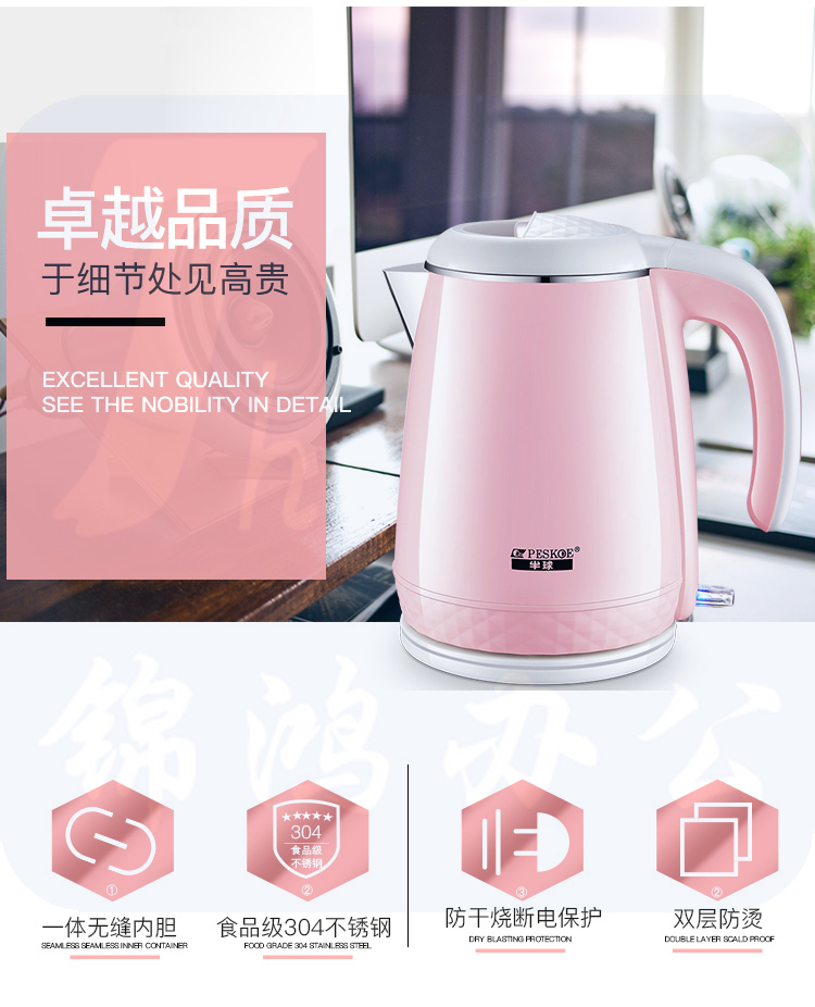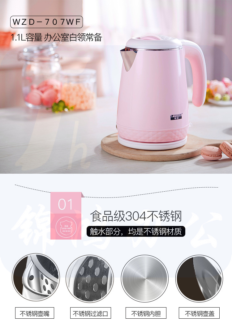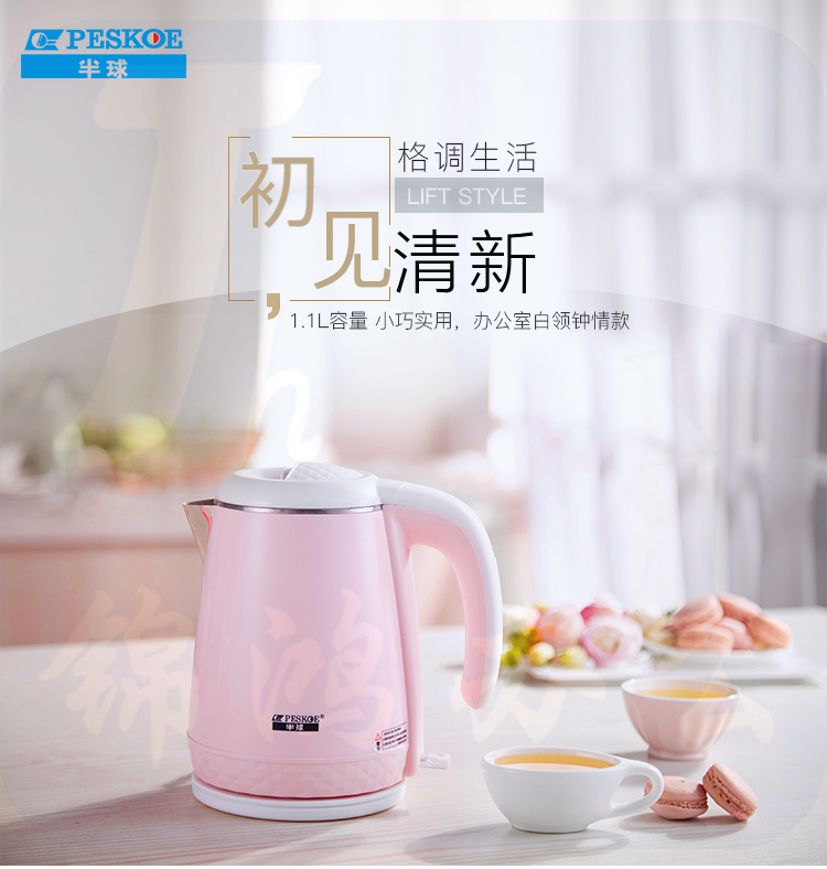 半球(Peskoe)电热水壶 304不锈钢 双层防烫烧水壶WZD-707WF 1.1L电水壶 无缝内胆