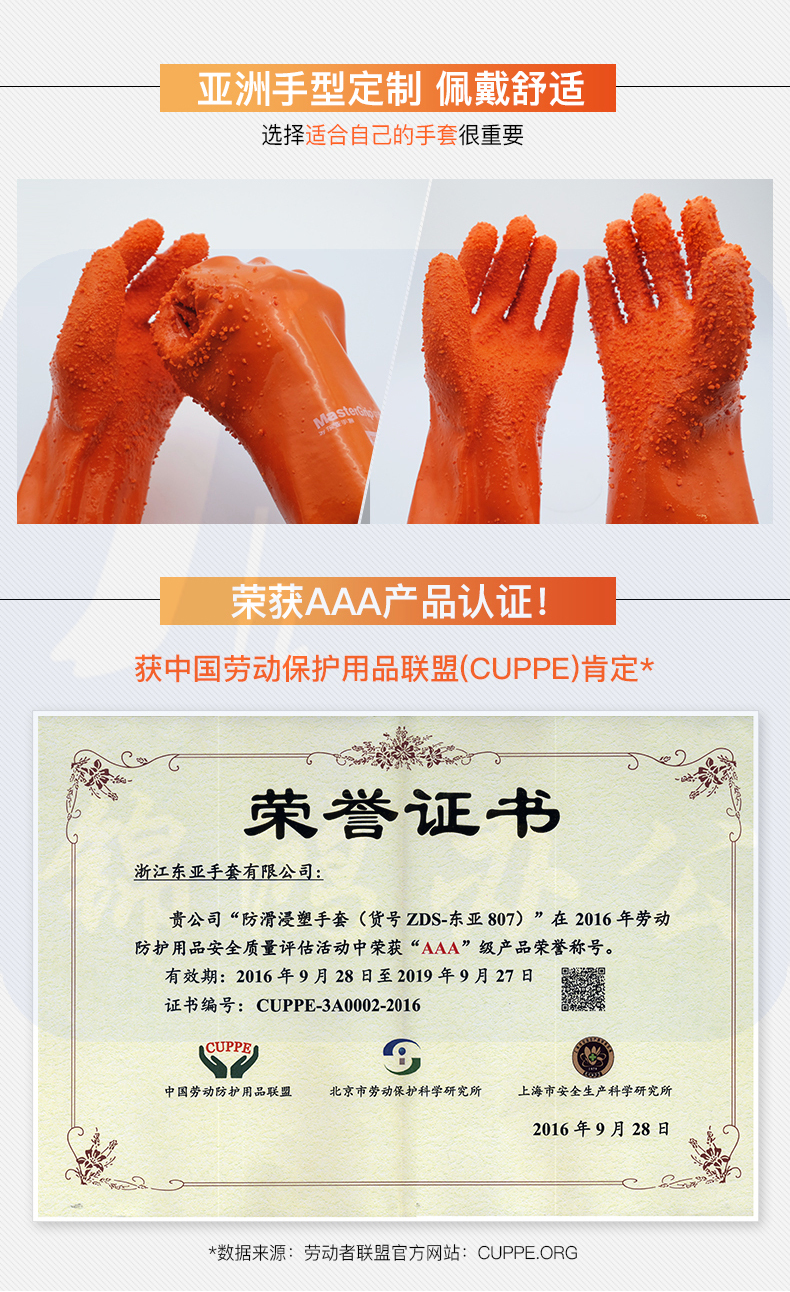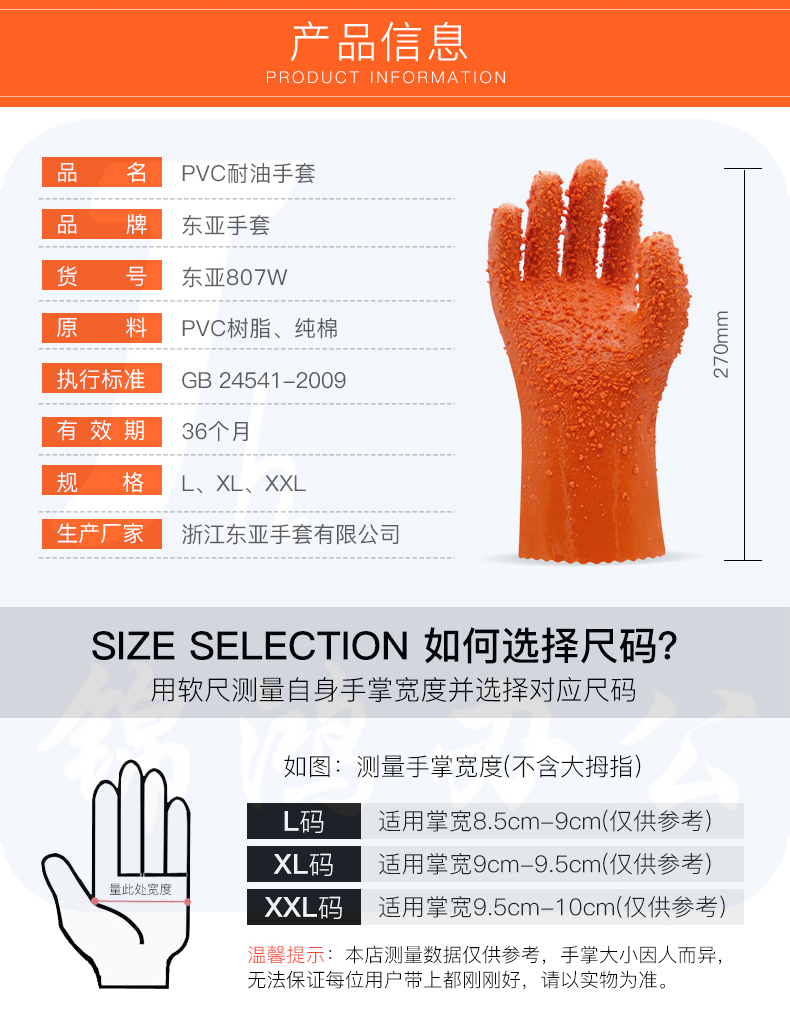 东亚(EAST)807止滑浸塑手套/耐磨耐酸碱耐油/防腐蚀/ 加厚手套
