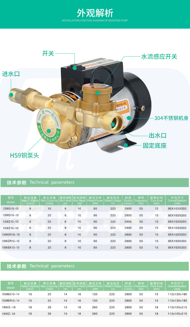 浪奇 15WZ10-10(90W)自动增压泵