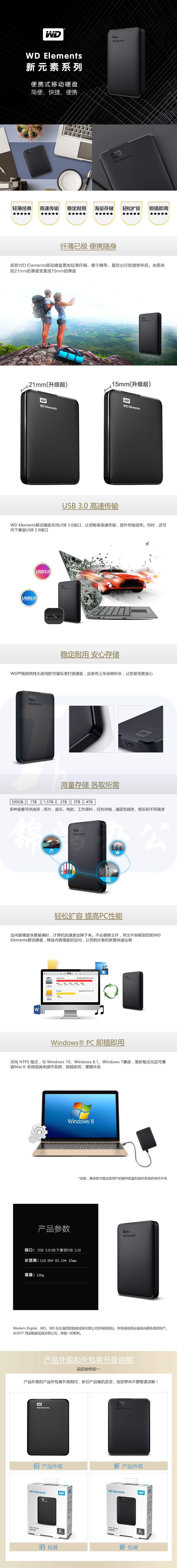 西部数据 2TB 移动硬盘 WDBUZG0020BBK 2.5英寸USB3.0兼容mac