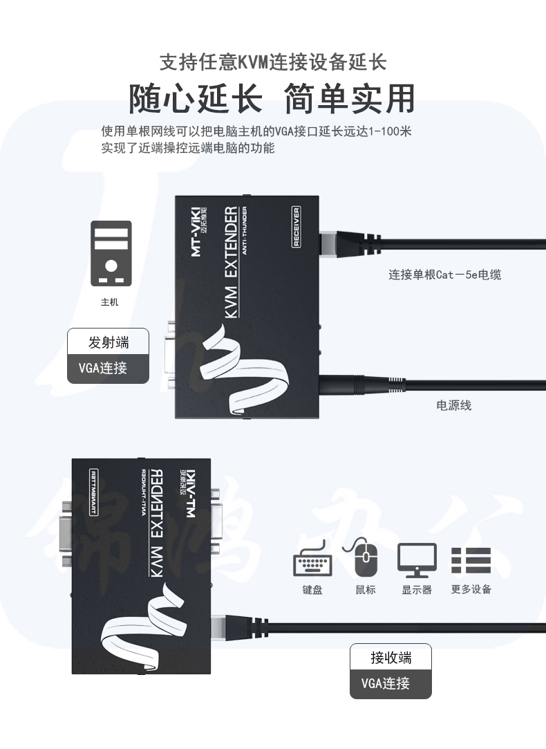 迈拓维矩MT-ED100UK kvm延长器100米vga转rj45usb键鼠网线延伸传输器
