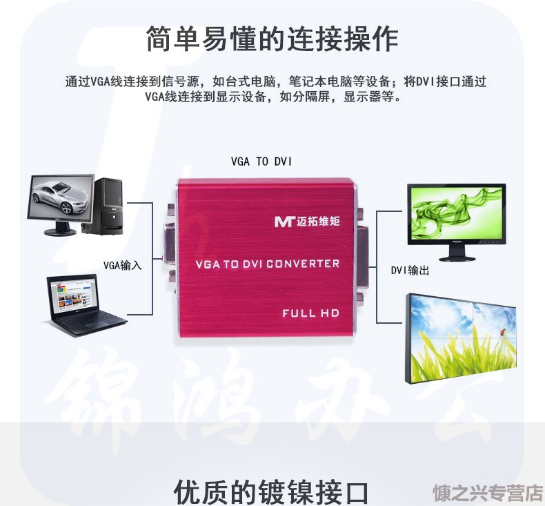 迈拓维矩 MT-VD02 DVI转VGA转换器 DVI-D数字转模拟信号高清显示