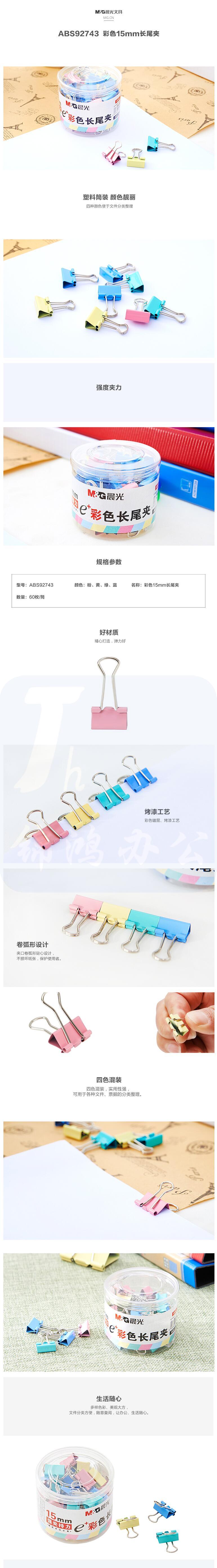 晨光彩色长尾夹15mm 60个/筒 4筒装 ABS92743