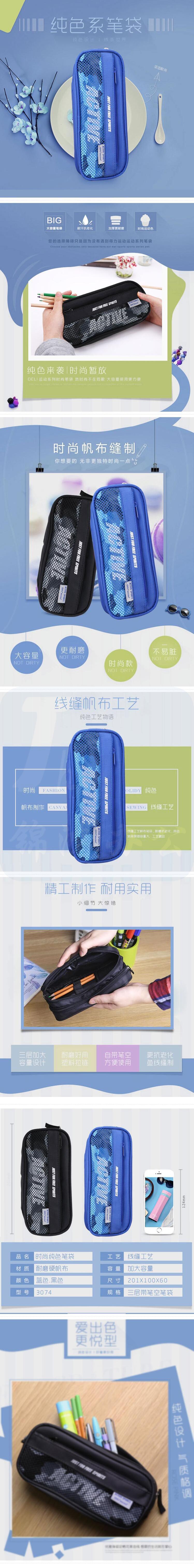 得力3074 运动笔袋 文具袋 袋鼠收纳袋 黑色