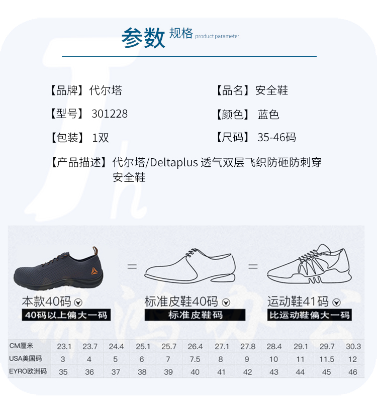 代尔塔 301228 透气双层飞织防砸防刺穿安全鞋