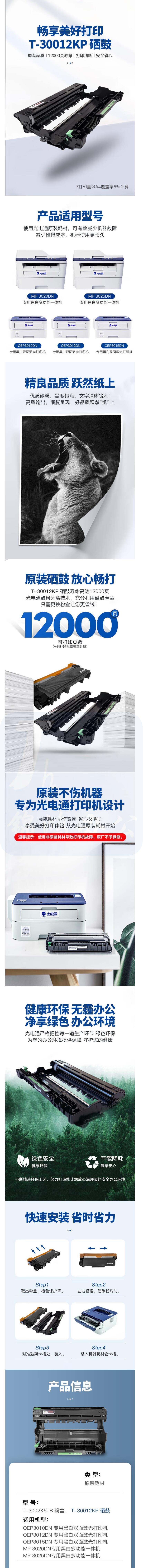 光电通硒鼓 T-30012KP 分体鼓 12000页 OEP3010DN/OEP3012DN/MP3020DN/MP3025DN