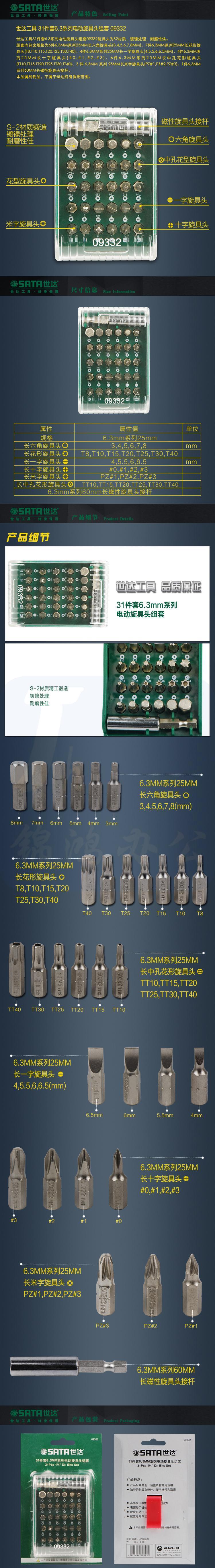 世达(SATA)31件套6.3系列电动旋具头组套货号09332