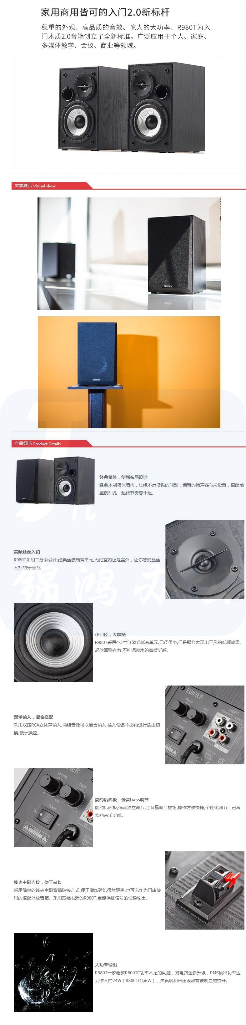 漫步者(EDIFIER)R980T 入门级多媒体2.0音箱 音响 电脑音箱