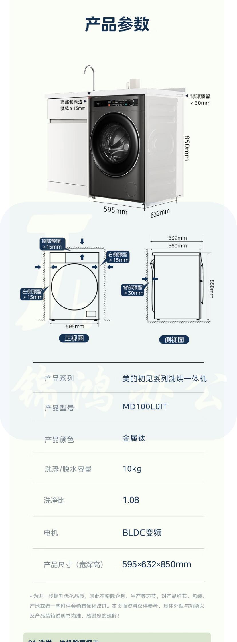 美的 滚筒洗衣机全自动10公斤 MG100L0IT