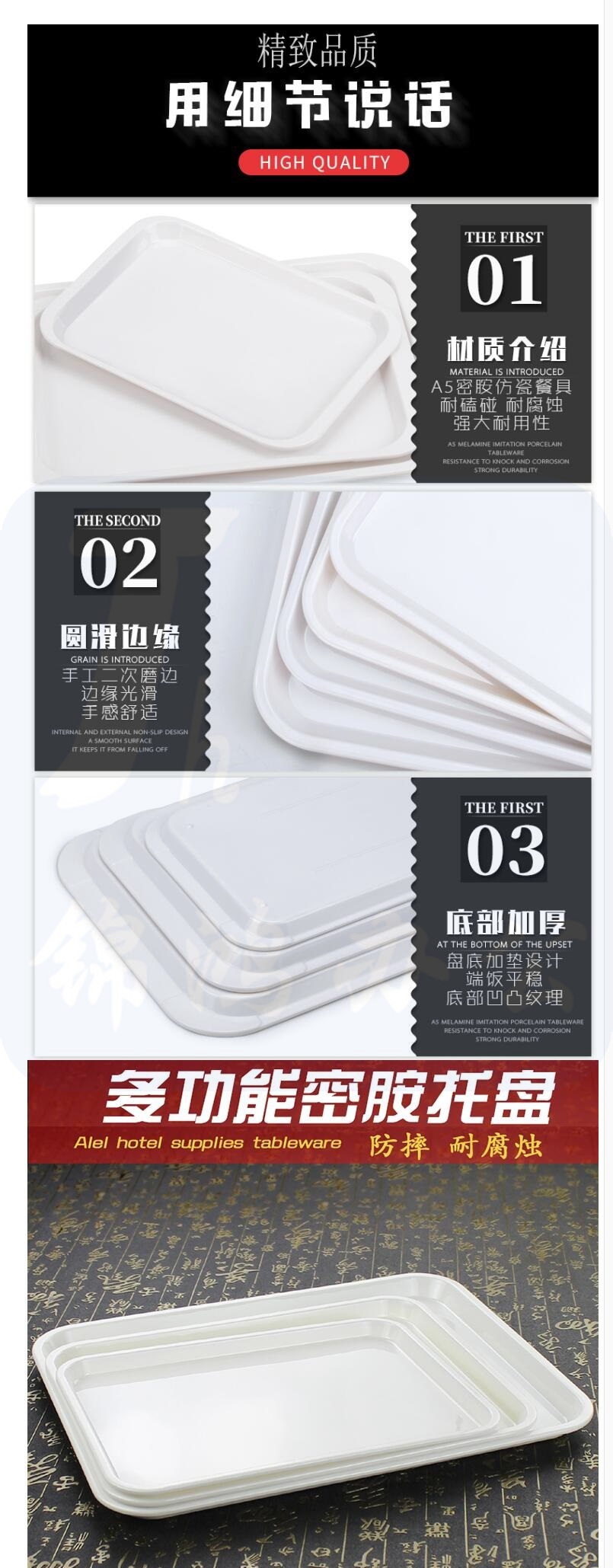 特大号密胺托盘 白色塑料仿瓷盘子8718 45.2*31.2*5.8cm 货号:JC