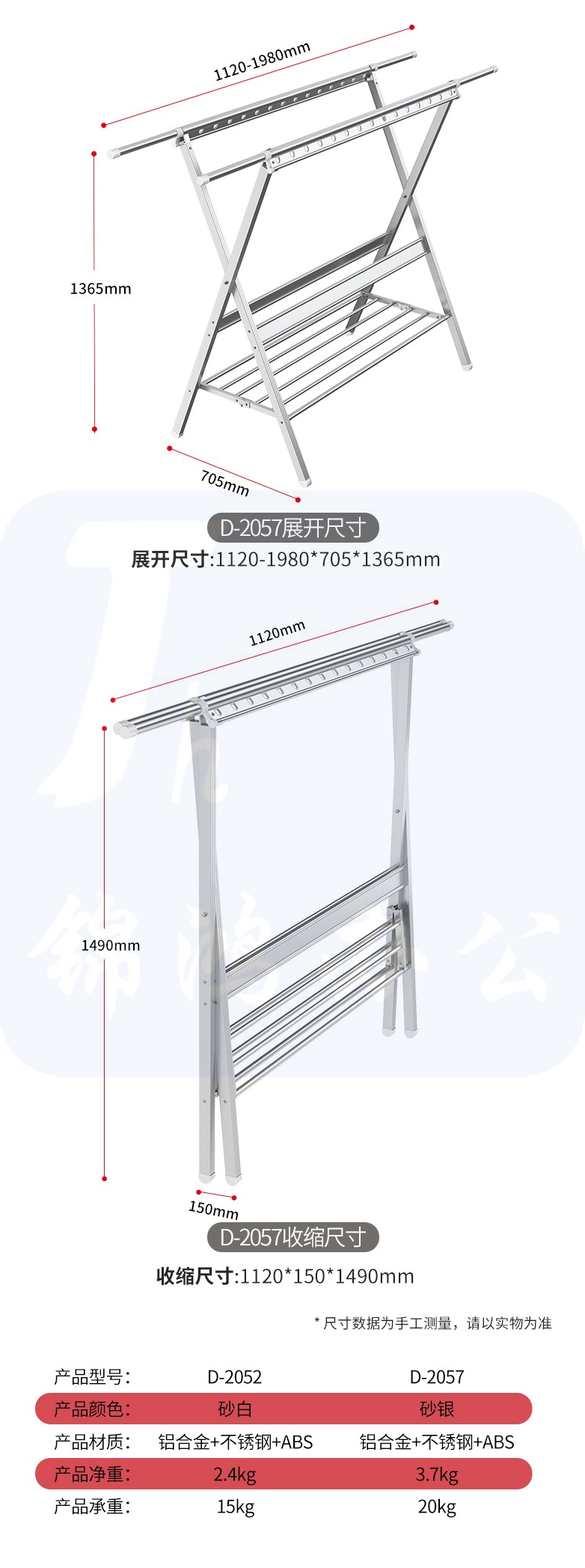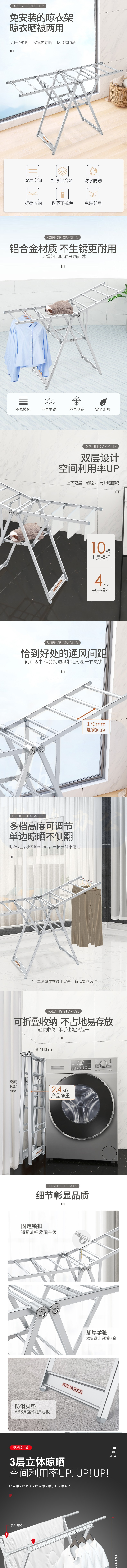晾衣架 落地 双层大晾晒 晾衣杆室外晒被子 砂白银【展开长1.3米】