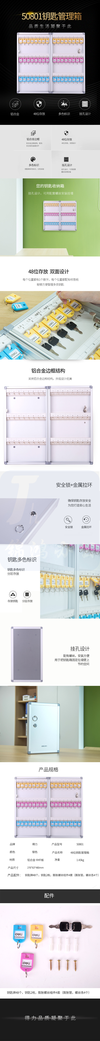 得力 48位铝合金钥匙管理箱276*63*480mm(50801)