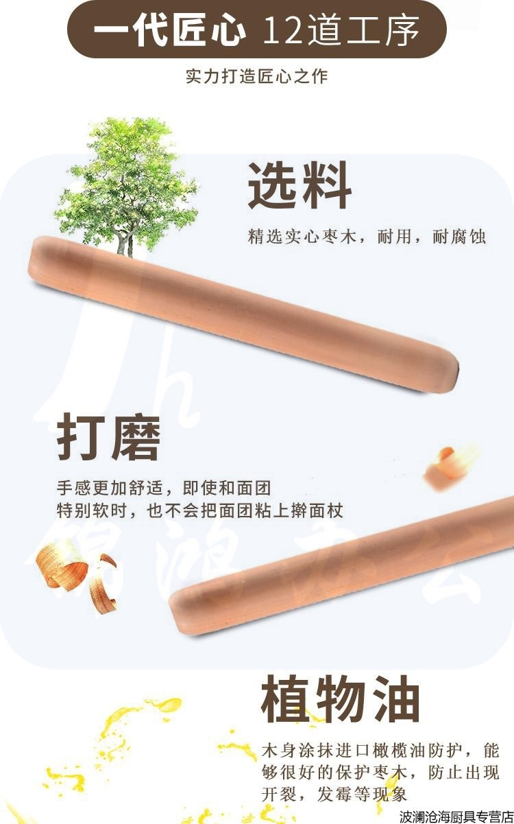 擀面杖 家用饺子皮压面棒 长50cm