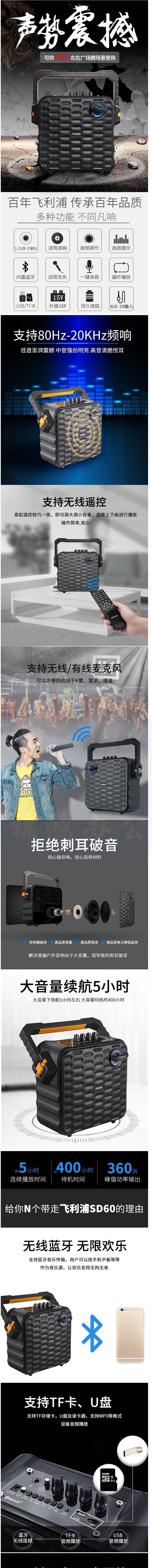 飞利浦(philips) SD60 广场舞音响家用K歌直播蓝牙音箱 单话筒
