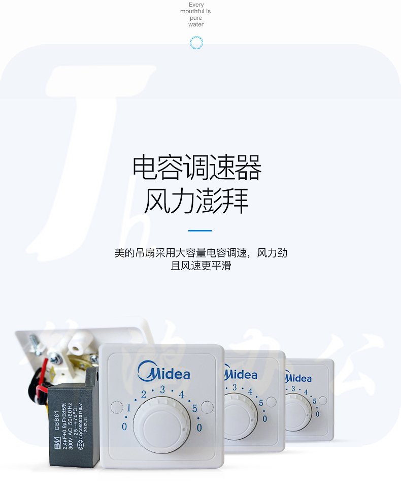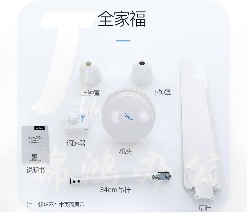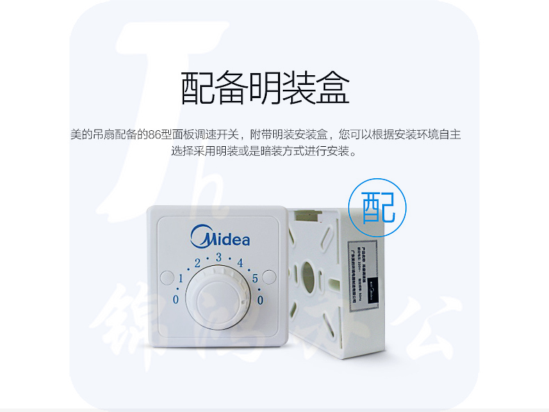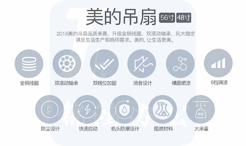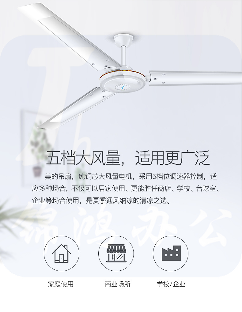 美的 FC140-BA 吊扇 三叶 5档 56寸 不包安装 含加长杆 白色