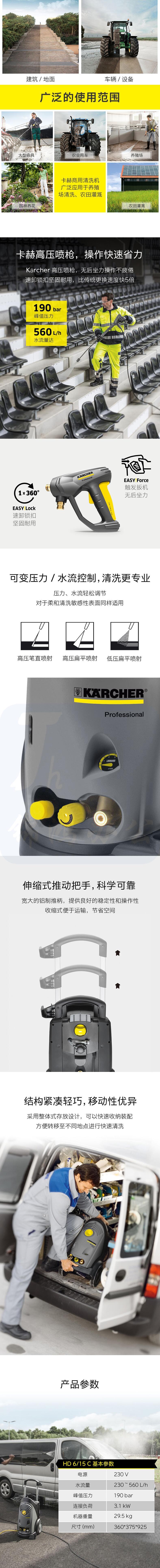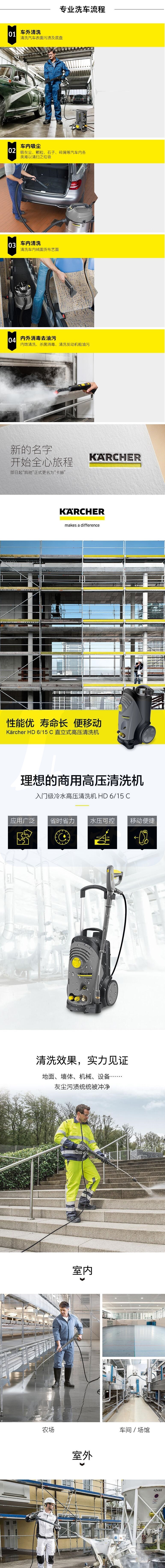 karcher卡赫 德国凯驰集团原装进口 高压洗车机 工商业高压清洗机 HD6/15C 220V汽车用品