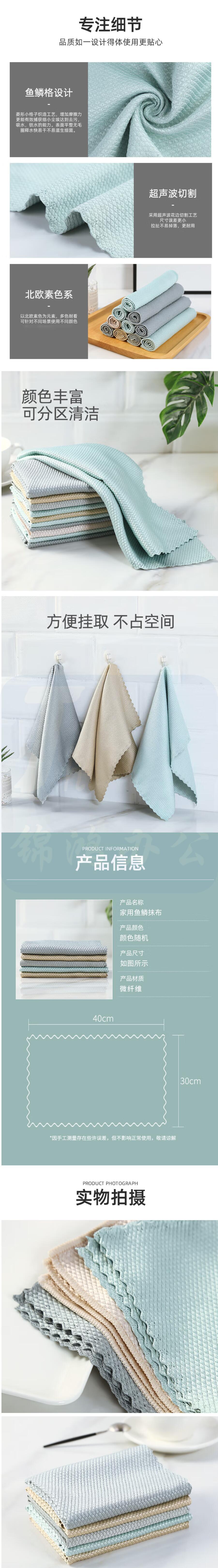 洁丽雅 40*30cm 擦玻璃鱼鳞抹布不掉毛毛巾(5条/包)