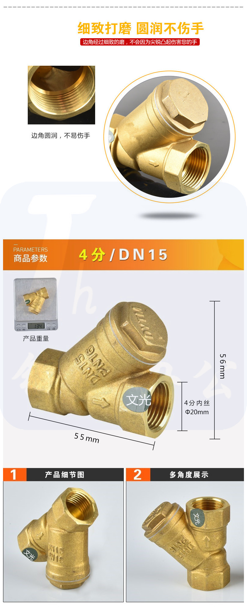 黄铜Y型过滤器增压水泵中央空调管道阀门4分DN15过滤阀