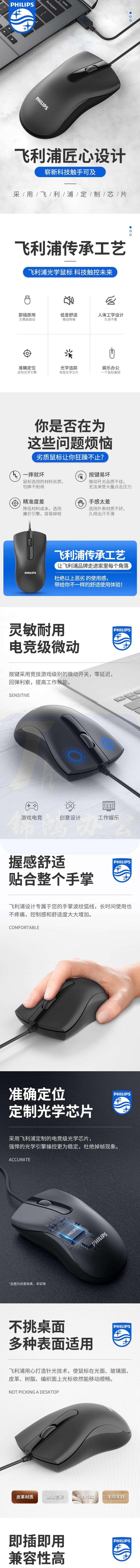 飞利浦 SPK7101 鼠标 有线鼠标 办黑色