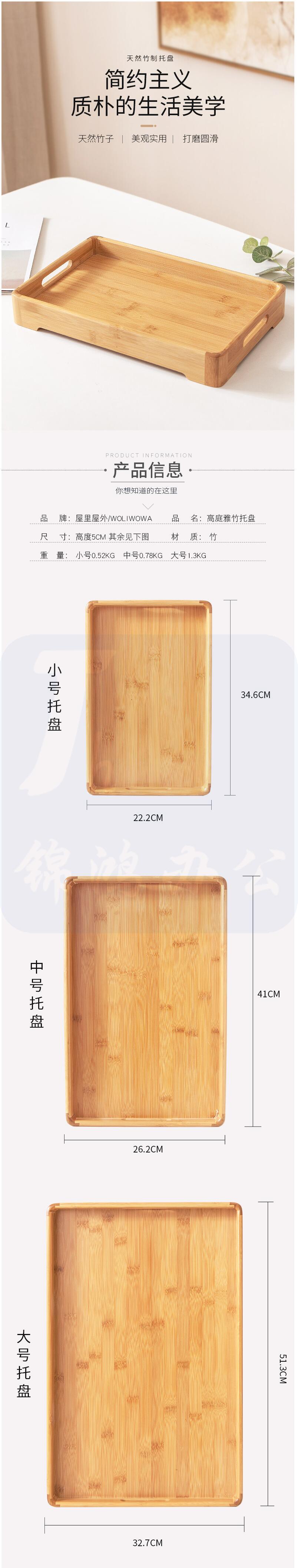 竹制长方形托盘 家用木质茶水杯茶盘 带把手 高庭雅竹-大号托盘