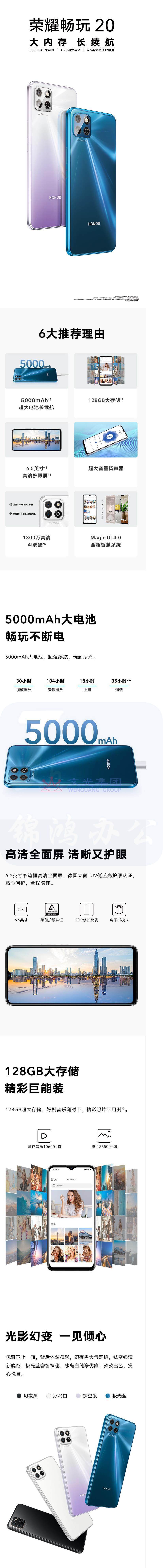 荣耀畅玩20 手机 5000mAh超大电池续航 6.5英寸大屏 6GB+128GB 极光蓝