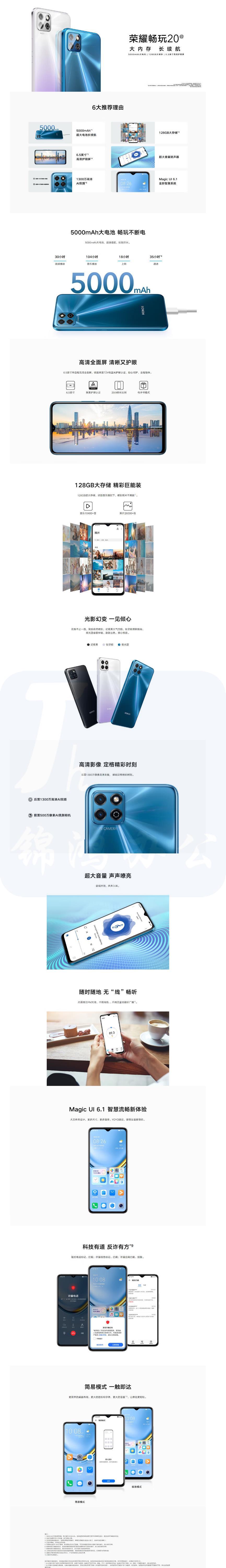 荣耀畅玩20a 手机 5000mAh超大电池续航 6.5英寸大屏 6GB+128GB 极光蓝