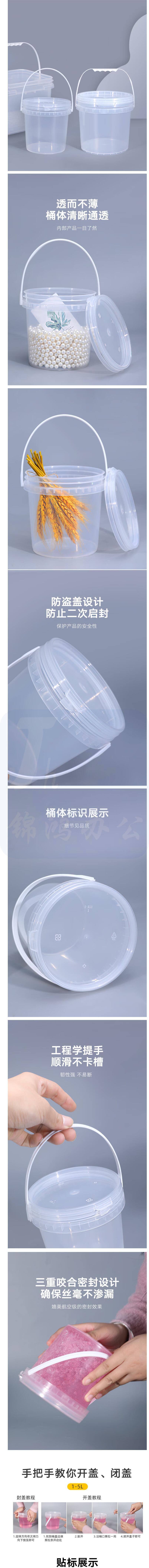 透明塑料桶 小号带盖手提桶 6L 货号:JC