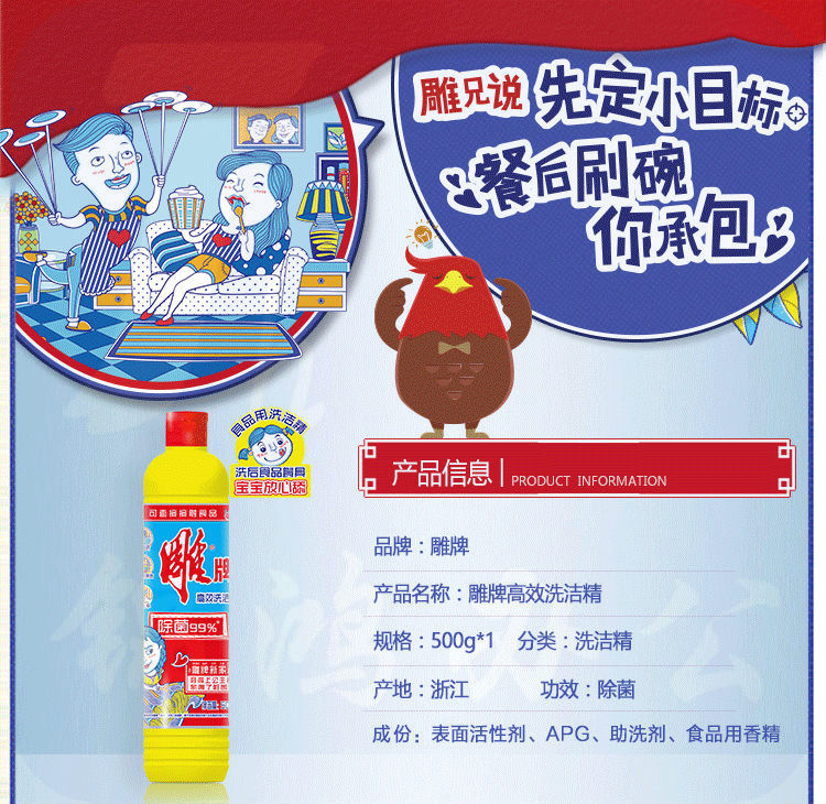 雕牌(DIAOPAI)高效洗洁精500g 30瓶/件
