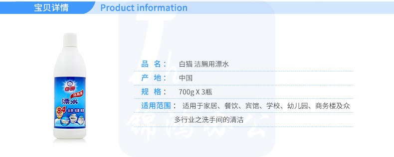 白猫 洁厕用漂水700*3瓶洁厕液马桶清洁剂厕所卫生间清洁剂洁厕净 洁厕用漂水700*3瓶