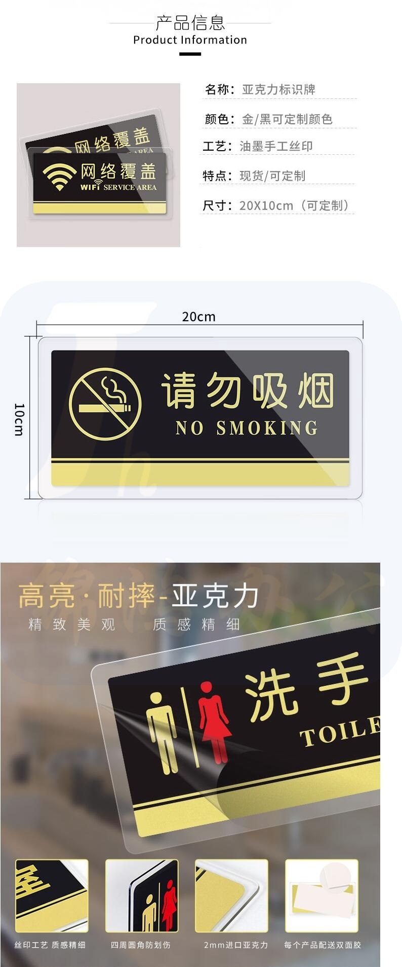 亚克力男女洗手间自粘指示牌导向卫生间标识牌厕所门牌指示牌温馨提示牌20X10cm 男女洗手间 货号:GD