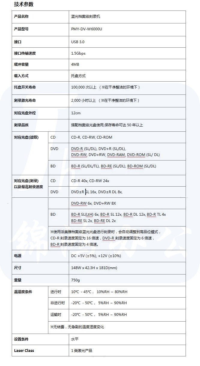派美雅 档案级蓝光外置光盘刻录机 DV-W6000U