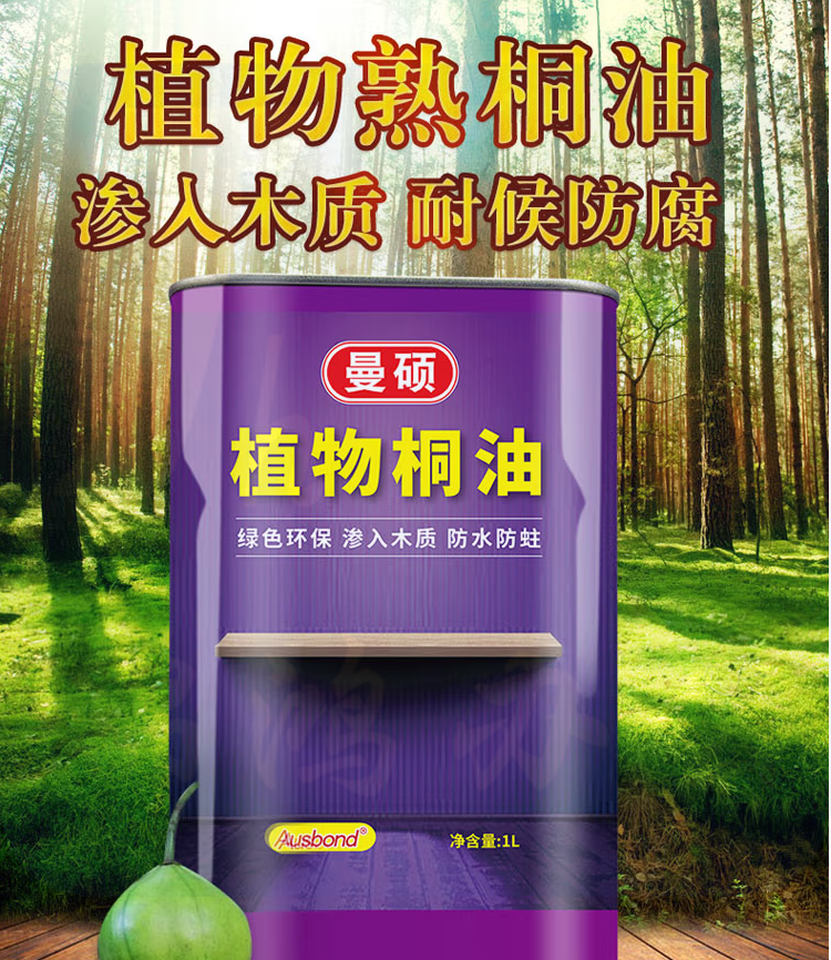 奥斯邦(Ausbond)植物熟桐油户外耐候木油木材防蛀防水防腐木器油漆木油漆光油清油实木油漆家具衣柜清漆1L