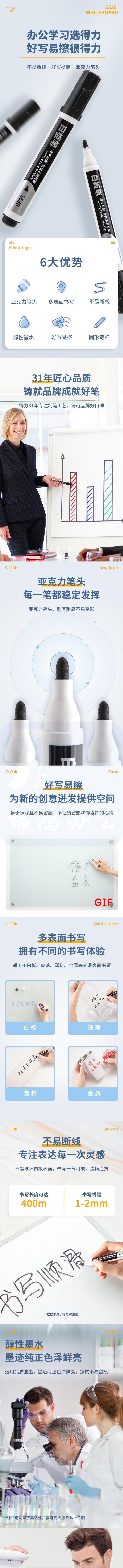 得力(deli)S536白板笔/黑/蓝/红/水性可擦大头笔(10支/盒) 下单备注颜色 默认黑色