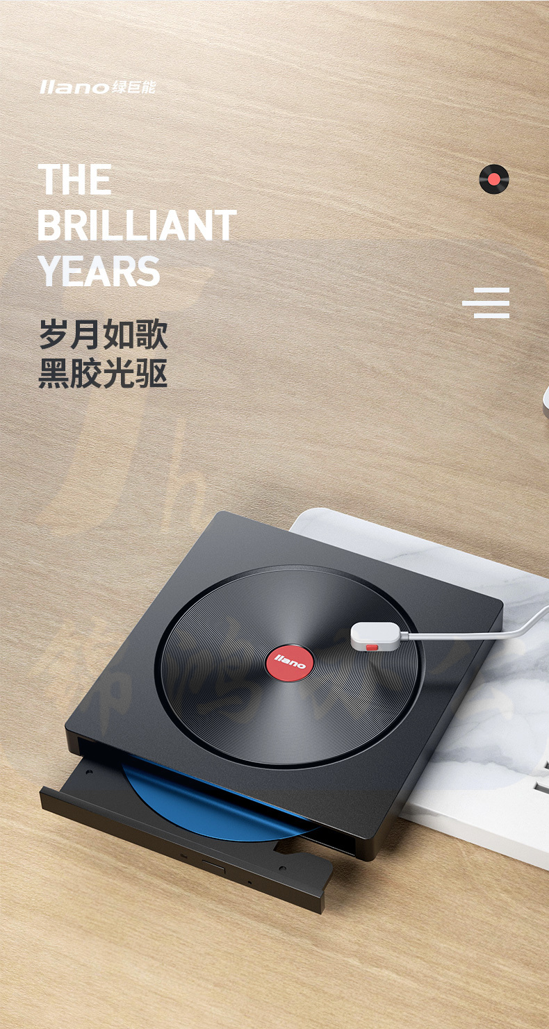 绿巨能 LJN-KLJ011type-c移动光驱 笔记本外置光驱 刻录机 USB/type-c笔记本光驱 CD/DVD高速刻录机 复古黑胶款