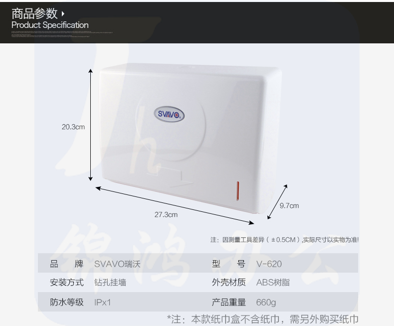 瑞沃SVAVO V-620壁挂擦手纸盒厕纸盒