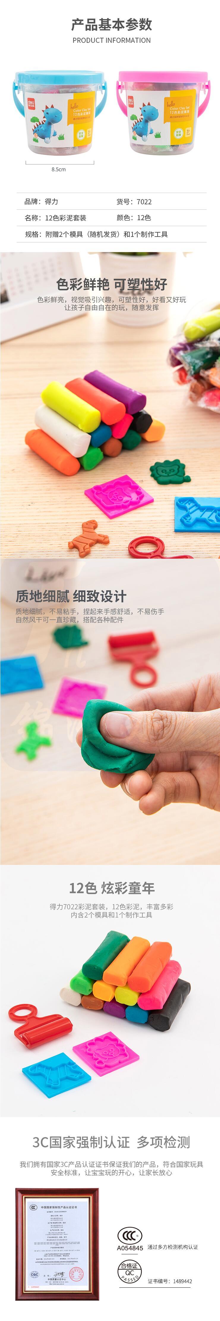 得力 12色超轻粘土 学生儿童玩具彩泥橡皮泥黏土7022 粉色